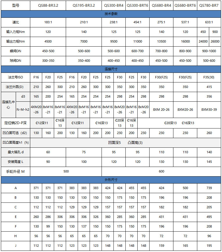 輸入小力矩,開動大閥門,使操作人員省力,每種型號提供多個傳動比,能更好的匹配不同規格的閥門。